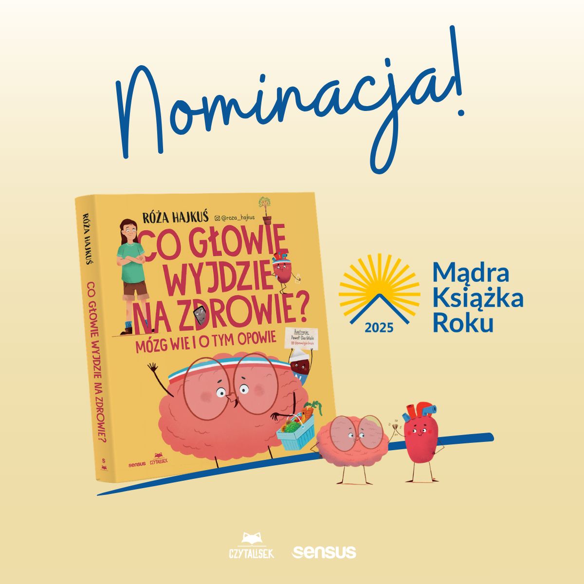 Róża Hajkuś, „Co głowie wyjdzie na zdrowie. Mózg wie i o tym opowie” - to książka, którą warto przeczytać. Myślę, że już sześciolatki mogą znaleźć w niej coś niezwykle interesującego - a wspólna lektura z dorosłymi może stać się dobrym początkiem rozmów o zdrowiu psychicznym. Narracja książki prowadzona jest w formie dialogu między Różą, mózgiem i sercem, z udziałem innych organów, takich jak jelito cienkie czy nerka. Ta forma - żywa, obrazowa i pełna humoru - w przystępny sposób przekazuje wiedzę opartą na rzetelnych podstawach. Autorka jest lekarką i specjalistką pediatrii, co sprawia, że książka łączy atrakcyjną formę z wartością merytoryczną. Poruszane tematy są bardzo aktualne i ważne - dotyczą snu, ruchu, kontaktu z naturą, diety, emocji, korzystania z telefonu czy wsparcia społecznego. Wszystko to składa się na przystępne i mądre wprowadzenie do tego, jak dbać o zdrowie naszej głowy - i całego ciała. Na uwagę zasługują również piękne, dopracowane ilustracje, które tworzą spójną całość z treścią autorstwa @pawelgierlinski Polecam - jako wspólną lekturę, punkt wyjścia do rozmów, ale i jako inspirację do codziennej troski o dobrostan.