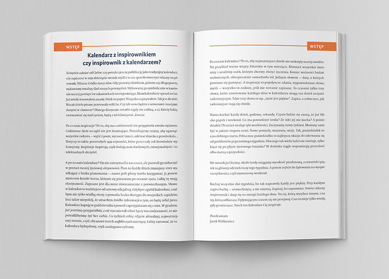 To będzie zależeć od Ciebie: czy potraktujesz tę publikację jako tradycyjny kalendarz,czy zapiszesz w nim dziesiątki swoich myśli i w ten sposób stworzysz własny inspirownik. Własne źródło mocy słów.