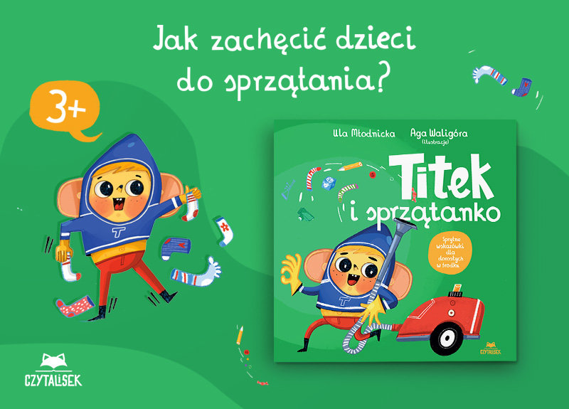 Dla dzieci sprzątanie jest nudne. Dla większości dorosłych zresztą też. Zwykle robimy to z poczucia obowiązku, które u małych dzieci jeszcze się nie wykształciło. Porządek nie jest ich naturalną potrzebą, taką jak zabawa czy odkrywanie świata. Dodatkowo trudno im zapanować nad procesem sprzątania – nie wiedzą, od czego zacząć, a bałagan je przytłacza. Co więcej, małym dzieciom trudno jest się skupić na jednej czynności – często się rozpraszają i gdy na przykład znajdą jakąś zabawkę, porzucają sprzątanie na rzecz zabawy. Przeczytajcie Titek i sprzątanko i znajdźcie swój sposób na to, aby sprzątanie stało się zabawą.